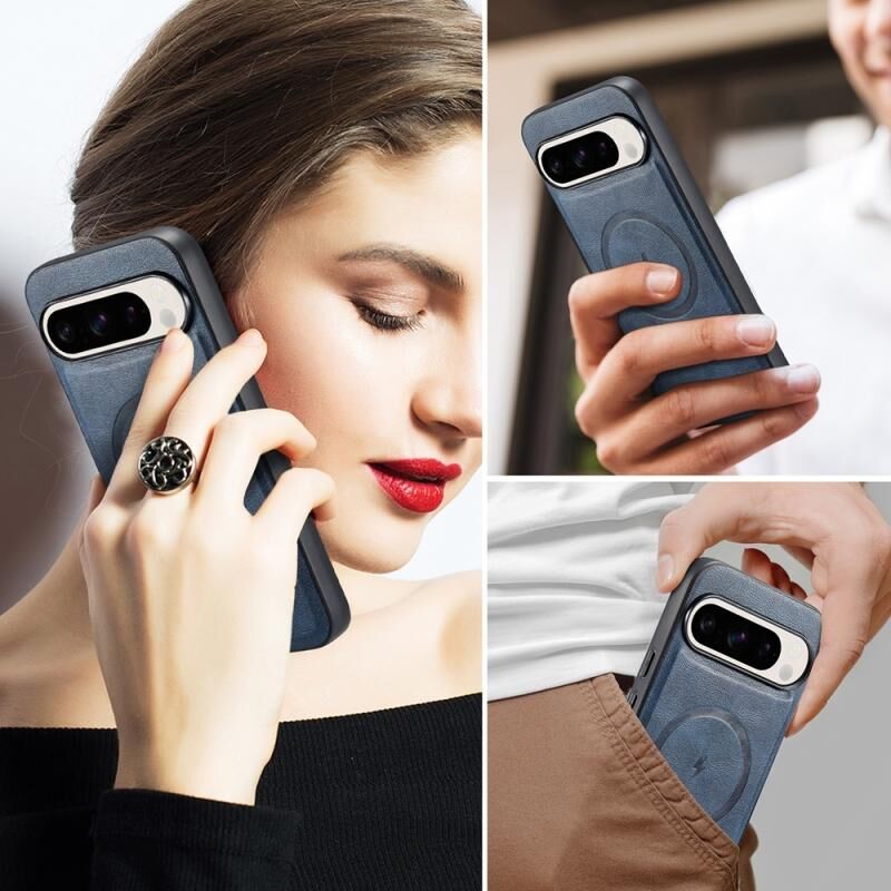 For Google Pixel 9 / 9 Pro Fierre Shann Cowhide Texture MagSafe Magnetic Phone Case(Blue) (FIERRE SHANN)