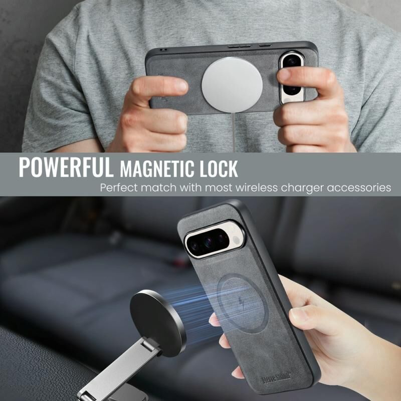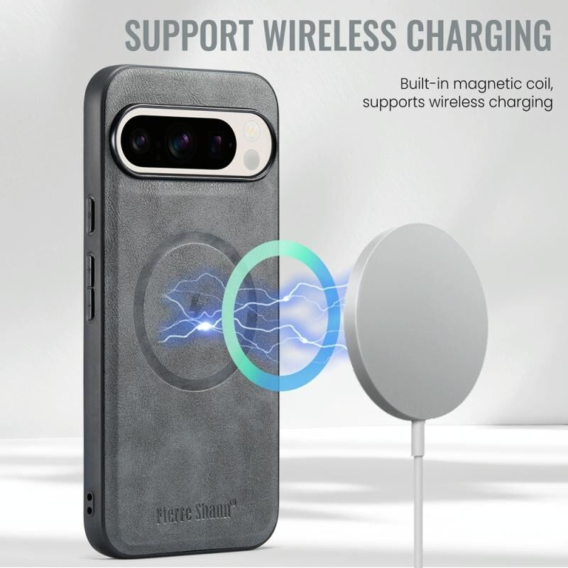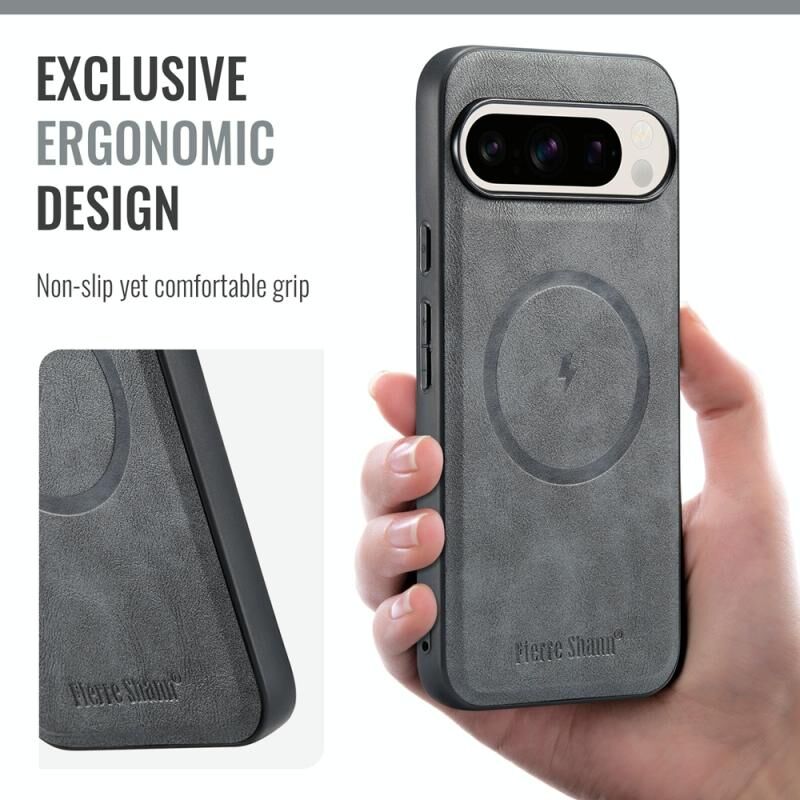 For Google Pixel 9 / 9 Pro Fierre Shann Cowhide Texture MagSafe Magnetic Phone Case(Grey) (FIERRE SHANN)