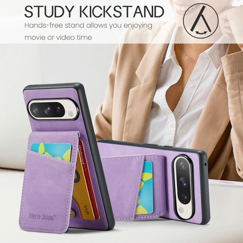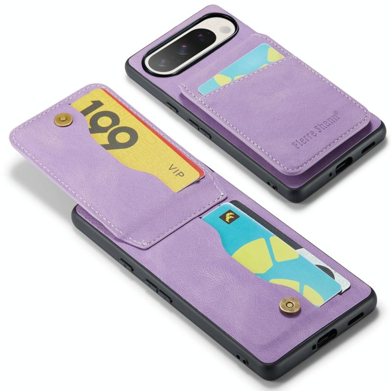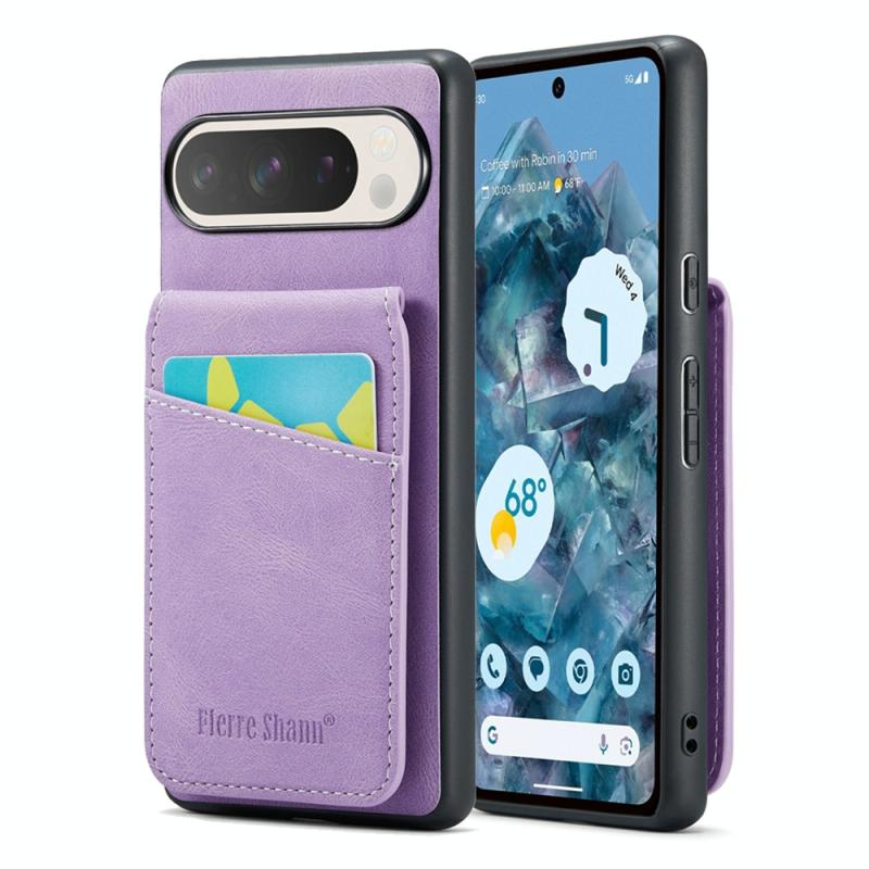 For Google Pixel 9 / 9 Pro Fierre Shann Crazy Horse Card Holder Back Cover PU Phone Case(Purple) (FIERRE SHANN)