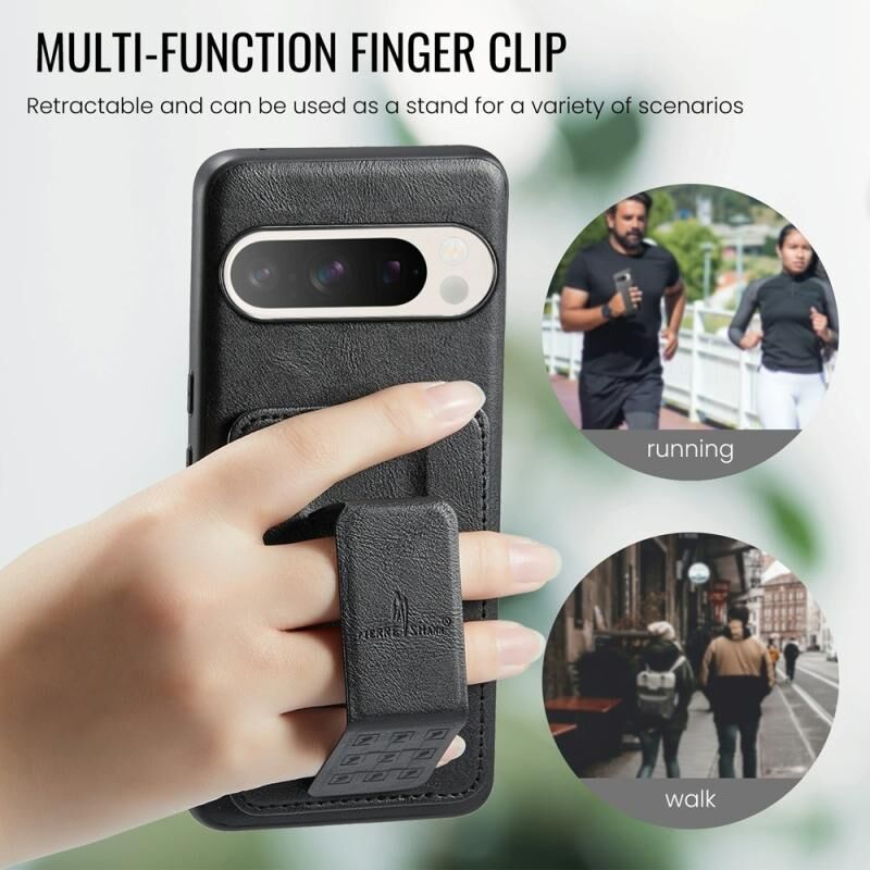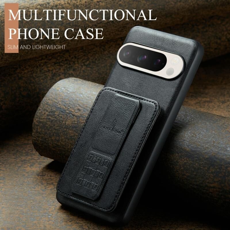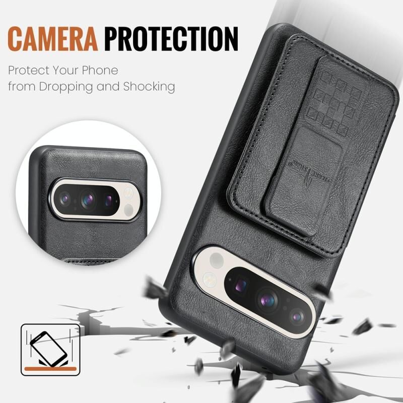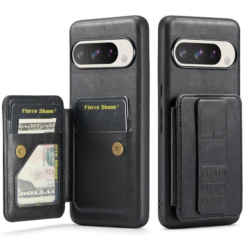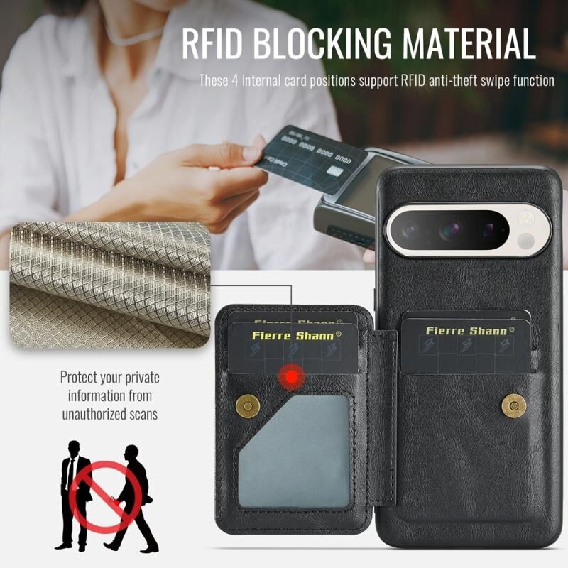 For Google Pixel 9 / 9 Pro Fierre Shann Oil Wax Cow Leather Card Holder Back Phone Case(Black) (FIERRE SHANN)