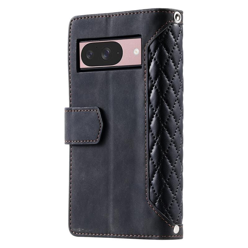Θήκη τηλεφώνου από δέρμα με υφή πλέγματος και φερμουάρ για Google Pixel 9 / 9 Pro με κορδόνι (Μπλε)