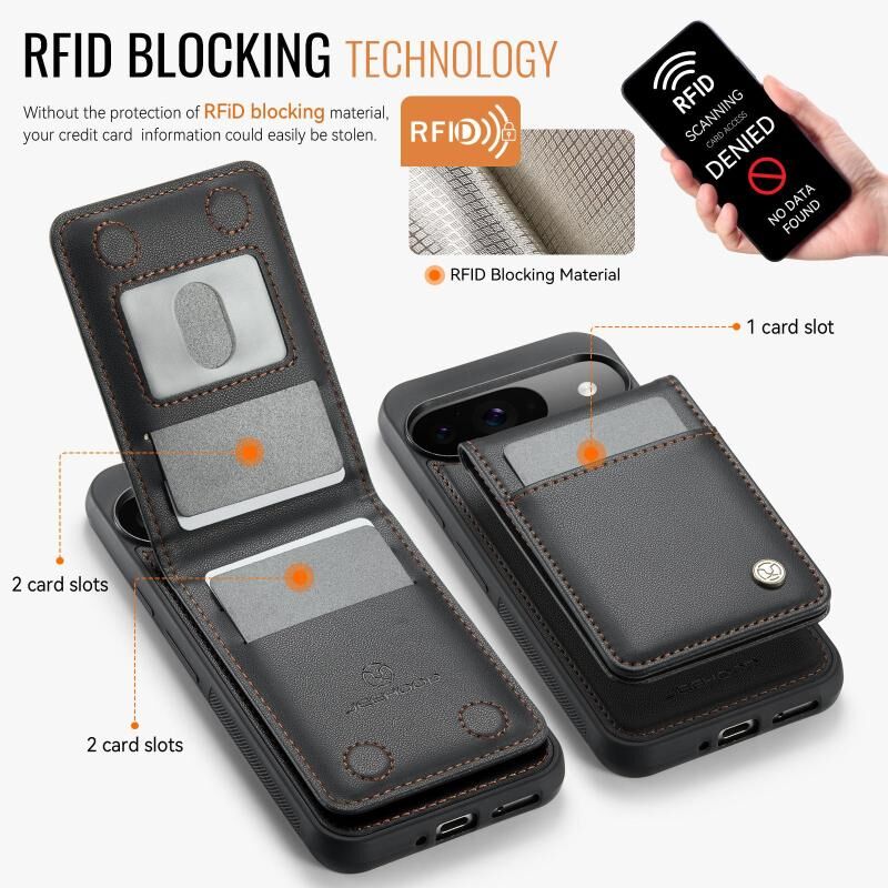 For Google Pixel 9 / 9 Pro JEEHOOD J06 British Style RFID MagSafe Card Bag PU Phone Case(Black) (JEEHOOD)