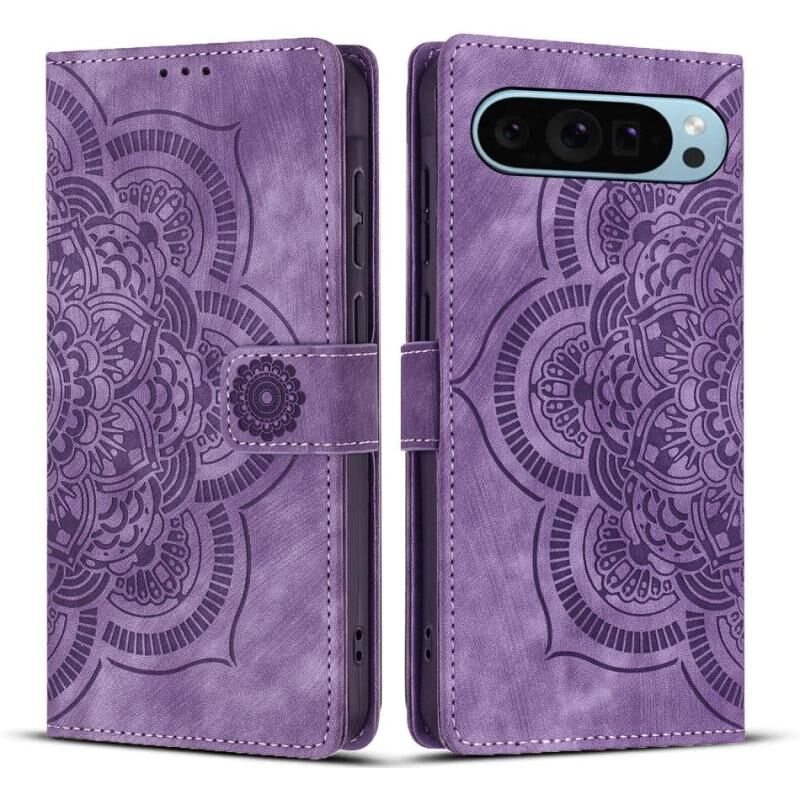 For Google Pixel 9 / 9 Pro Mandala Embossed Retro Frosted Leather Phone Case(Purple)