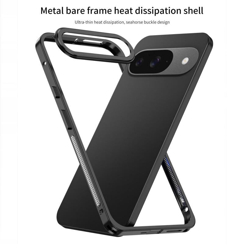 For Google Pixel 9 / 9 Pro Metal Frame Heat Dissipation Phone Case with Camera Guard Ring(Blue)