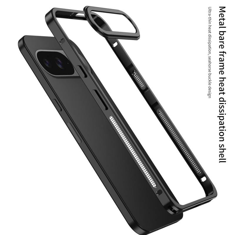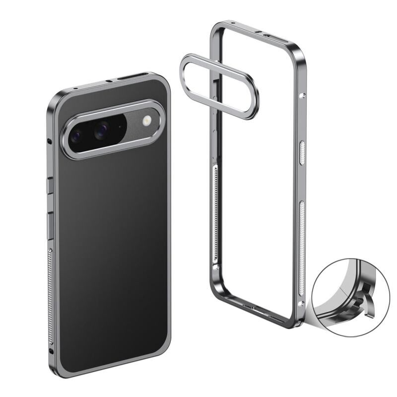For Google Pixel 9 / 9 Pro Metal Frame Heat Dissipation Phone Case with Camera Guard Ring(Gray)