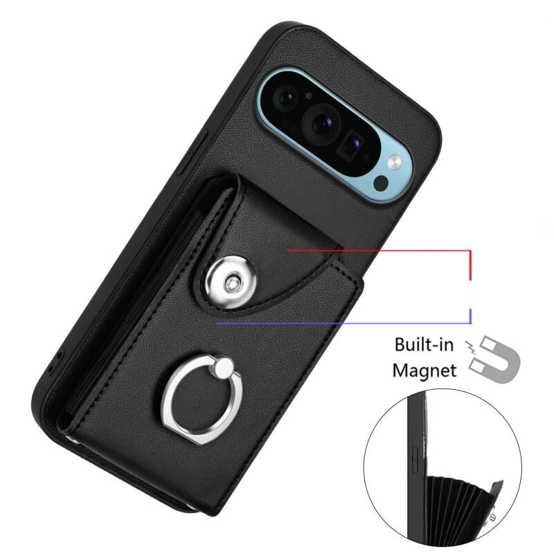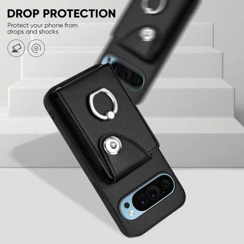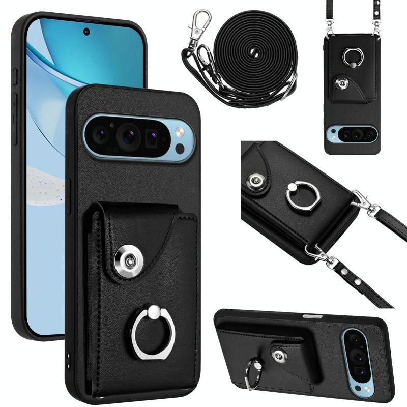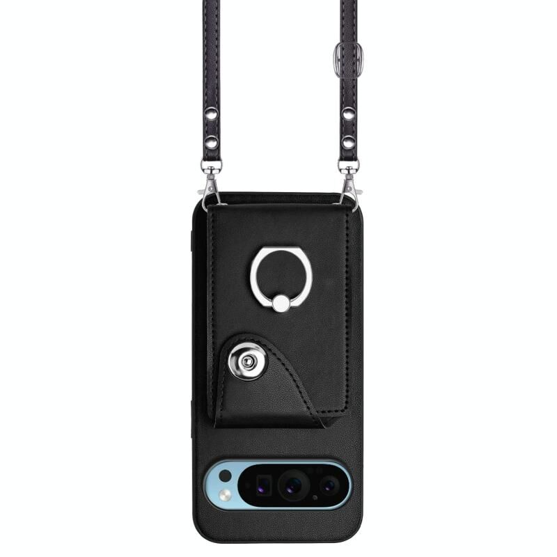 Για το Google Pixel 9 / 9 Pro Οργανική κάρτα τσάντα τσάντα δαχτυλίδι κάτοχος υπόθεση τηλεφώνου με μακρύ κορδόνι (Μαύρο)