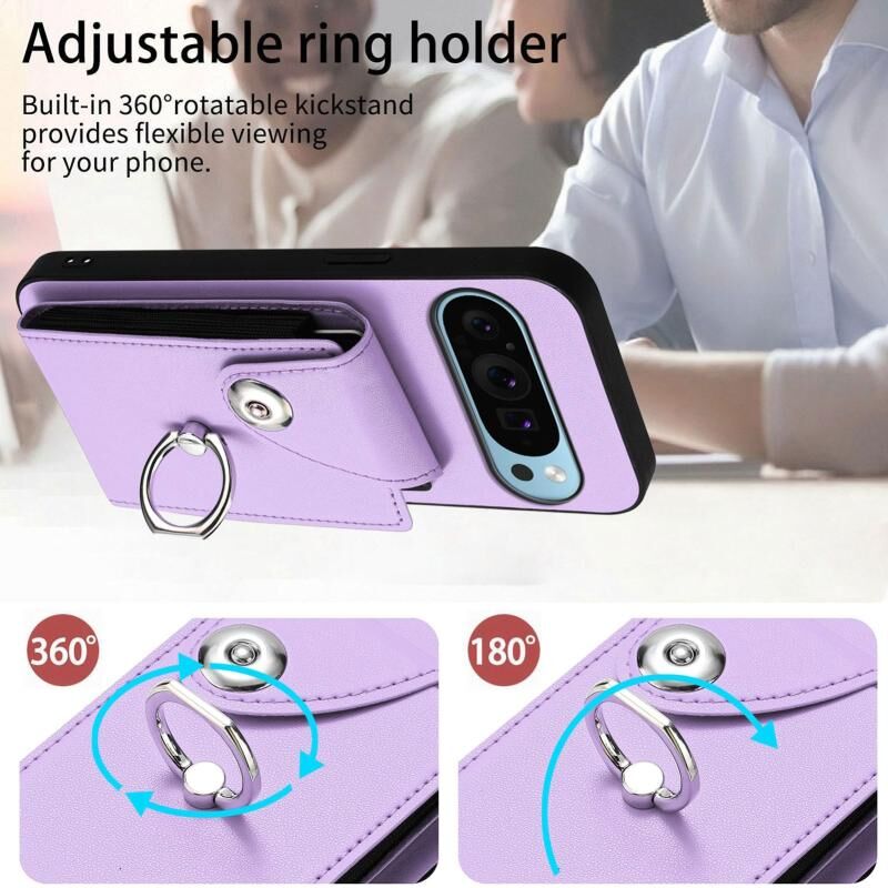 Για το Google Pixel 9 / 9 Pro Οργανική κάρτα τσάντα τσάντα δαχτυλίδι κάτοχος υπόθεση τηλεφώνου με μακρύ κορδόνι (μωβ)