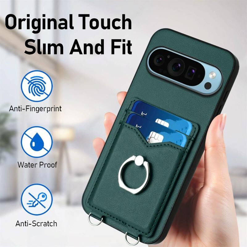 Θήκη τηλεφώνου Google Pixel 9 / 9 Pro R20 με κορδόνι, δακτύλιο και θήκη για κάρτες (Ροζ)