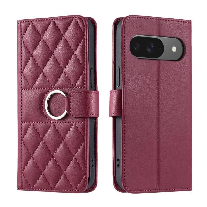For Google Pixel 9 / 9 Pro Ring Buckle Rhombic Leather Phone Case(Red)