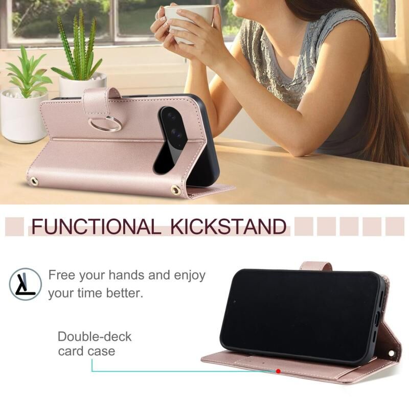 For Google Pixel 9 / 9 Pro Ring Buckle Rhombic Leather Phone Case(Rose Gold)