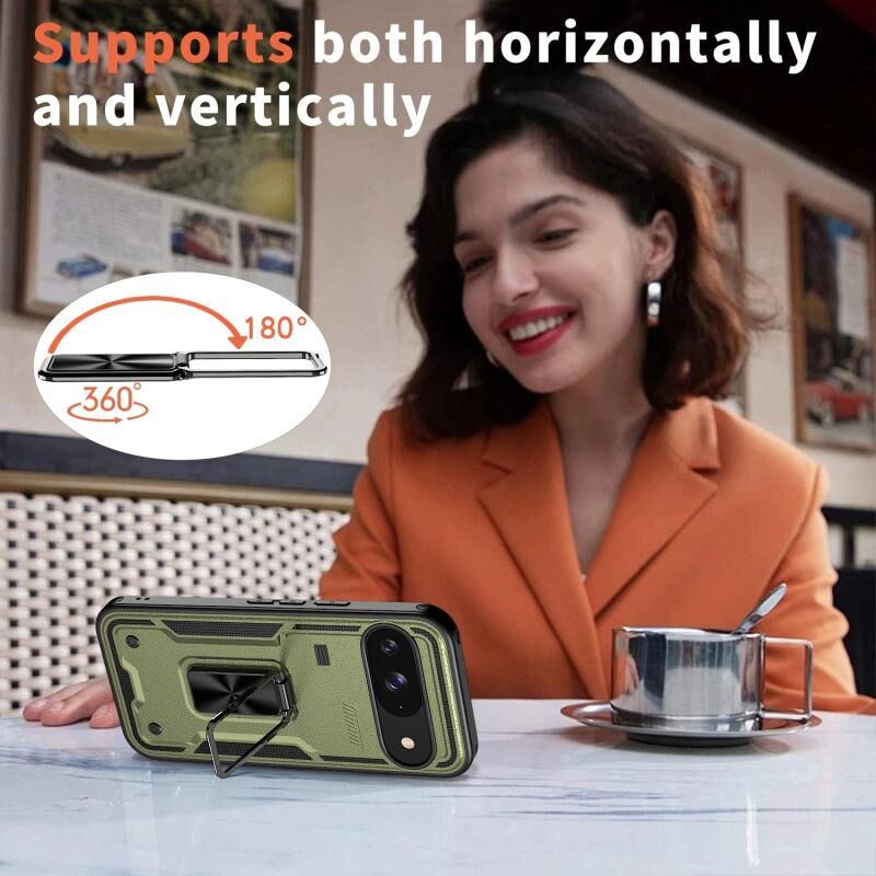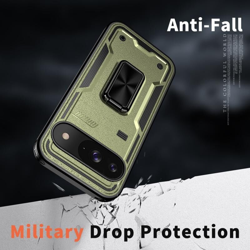 For Google Pixel 9 / 9 Pro Ring Holder PC Hybrid TPU Phone Case(Olive Green)
