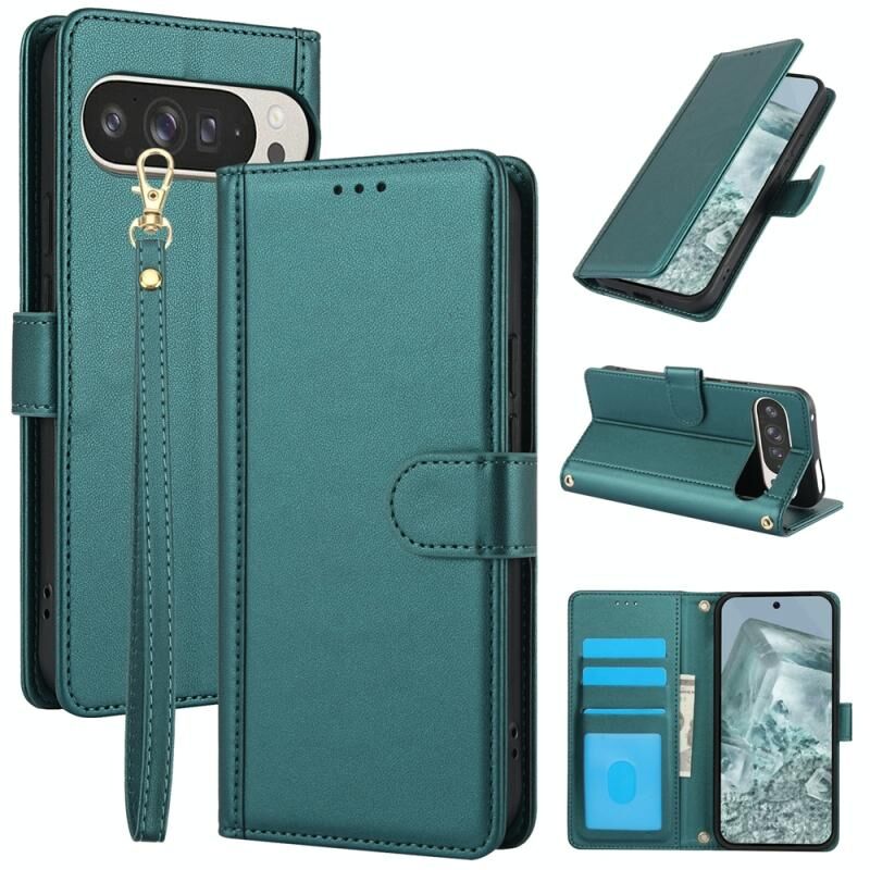 Για το Google Pixel 9 / 9 Pro Skin Feel Pure Color Card Slots δερμάτινη θήκη τηλεφώνου με διπλό κορδόνι (πράσινο)