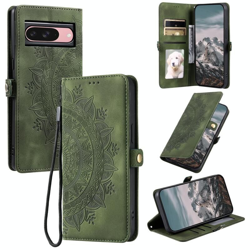 Για το Google Pixel 9 / 9 Pro Skin Feel Totem ανάγλυφη δερμάτινη θήκη τηλεφώνου (βαθύ πράσινο)