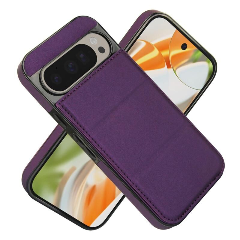 For Google Pixel 9 / 9 Pro Tri-fold Holder Leather Phone Case with Card Slot(Dark Purple)