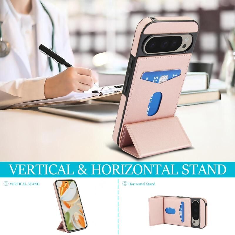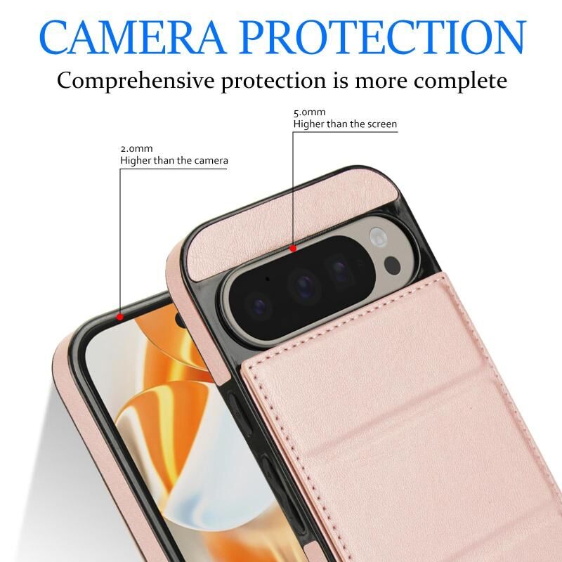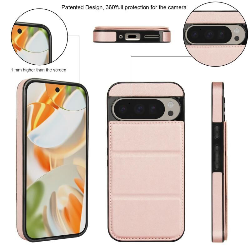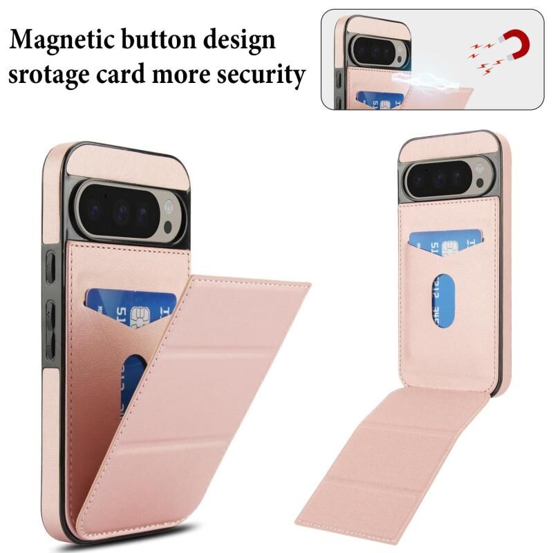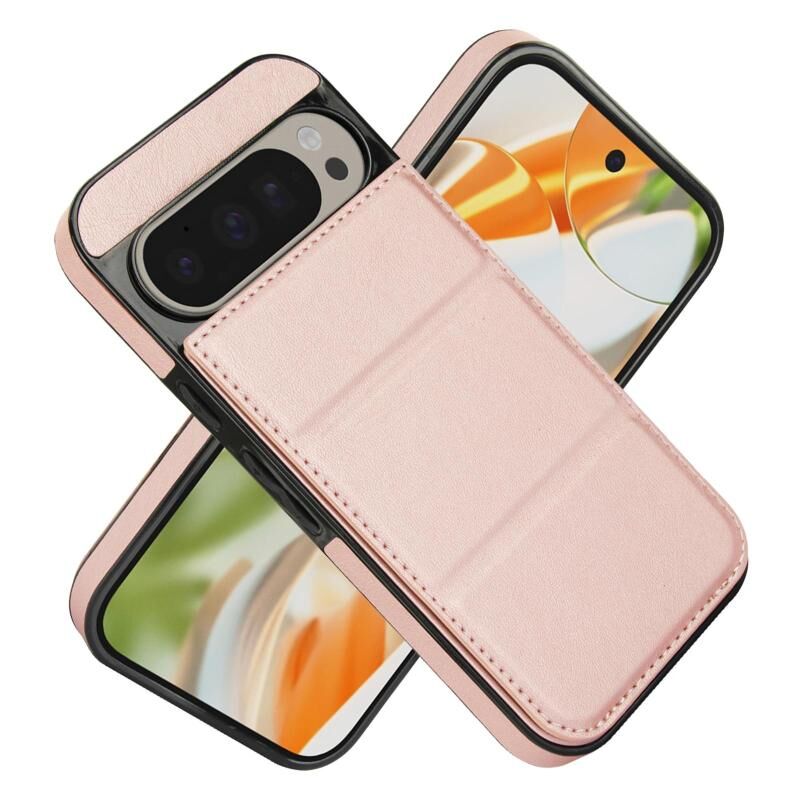 Θήκη τηλεφώνου από δέρμα με τριπλή πτυχή και θήκη για κάρτες για Google Pixel 9 / 9 Pro (Χρυσό ροζ)