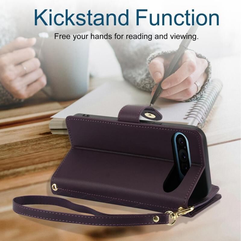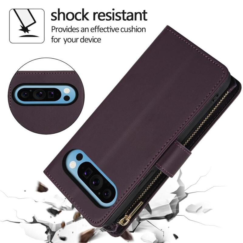 For Google Pixel 9 / 9 Pro YM016 Rhombic Zipper Card Wallet Leather Phone Case with Lanyard(Dark Purple)