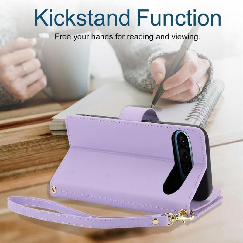 For Google Pixel 9 / 9 Pro YM016 Rhombic Zipper Card Wallet Leather Phone Case with Lanyard(Light Purple)