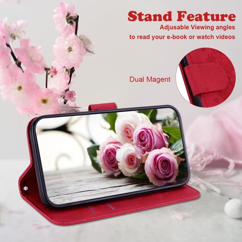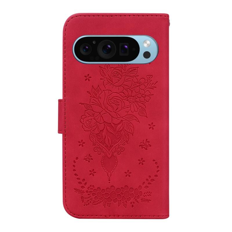 Για το Google Pixel 9 Πεταλούδα Rose ανάγλυφη δερμάτινη θήκη τηλεφώνου (κόκκινο)