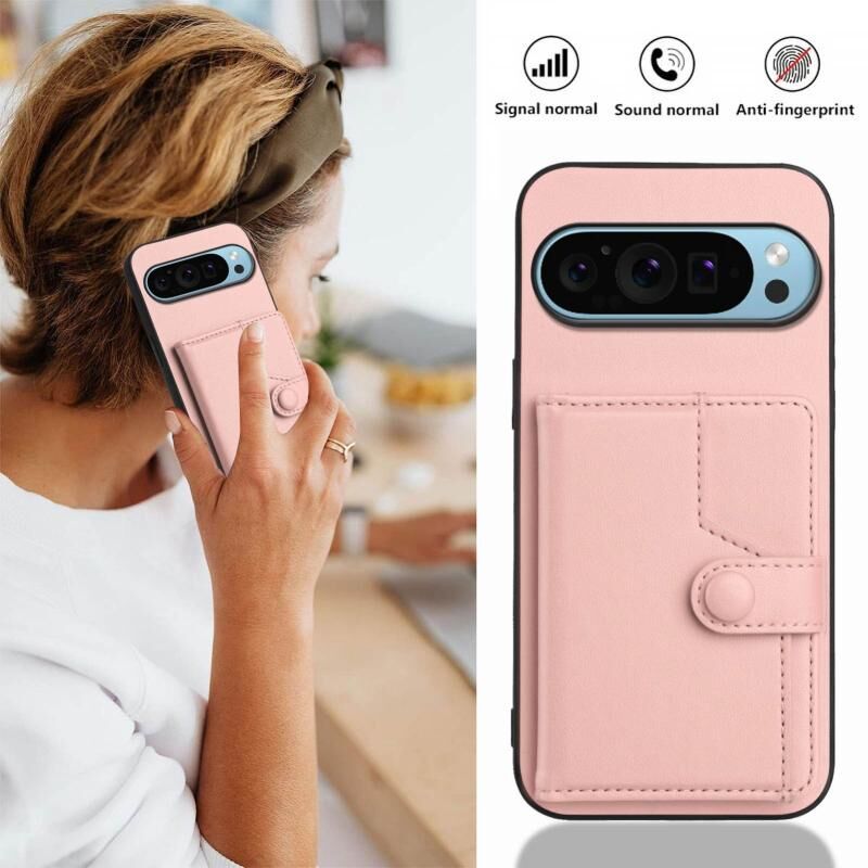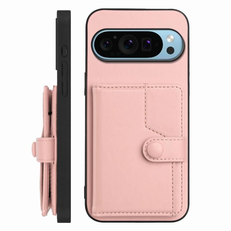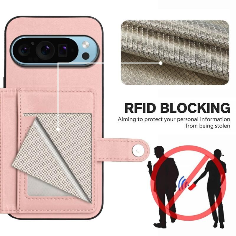 For Google Pixel 9 Button Card Bag RFID Anti-theft Phone Case(Pink)