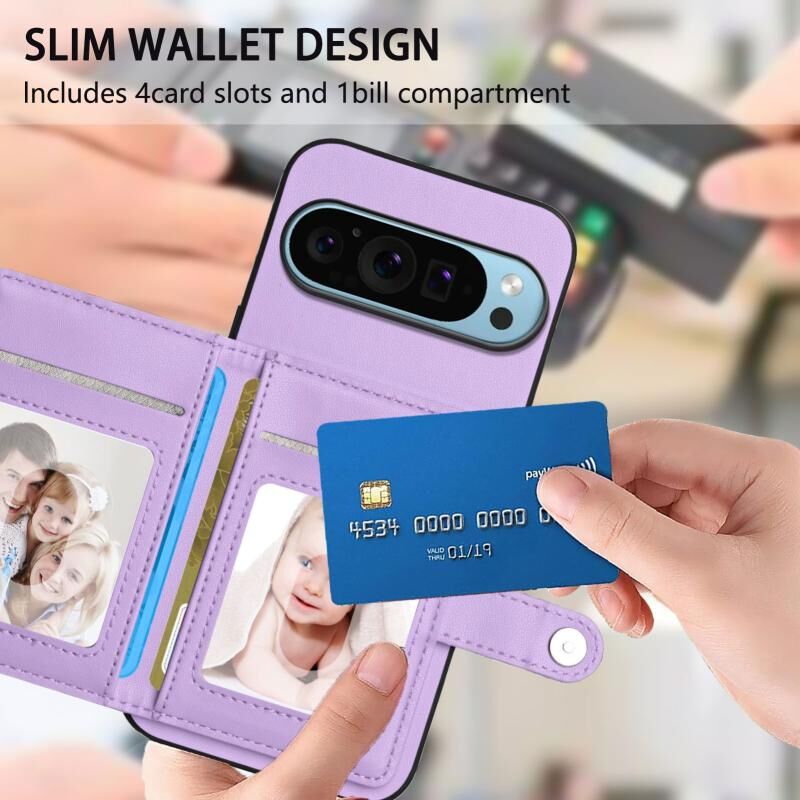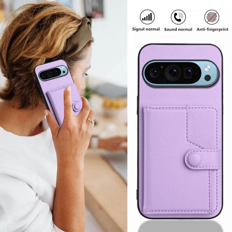 For Google Pixel 9 Button Card Bag RFID Anti-theft Phone Case(Purple)