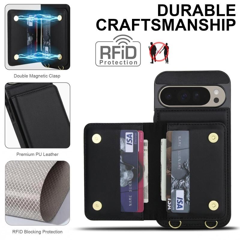 For Google Pixel 9 Crossbody Dual-buckle Wallet RFID Back Leather Phone Case(Black)