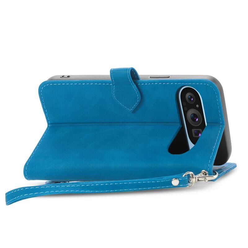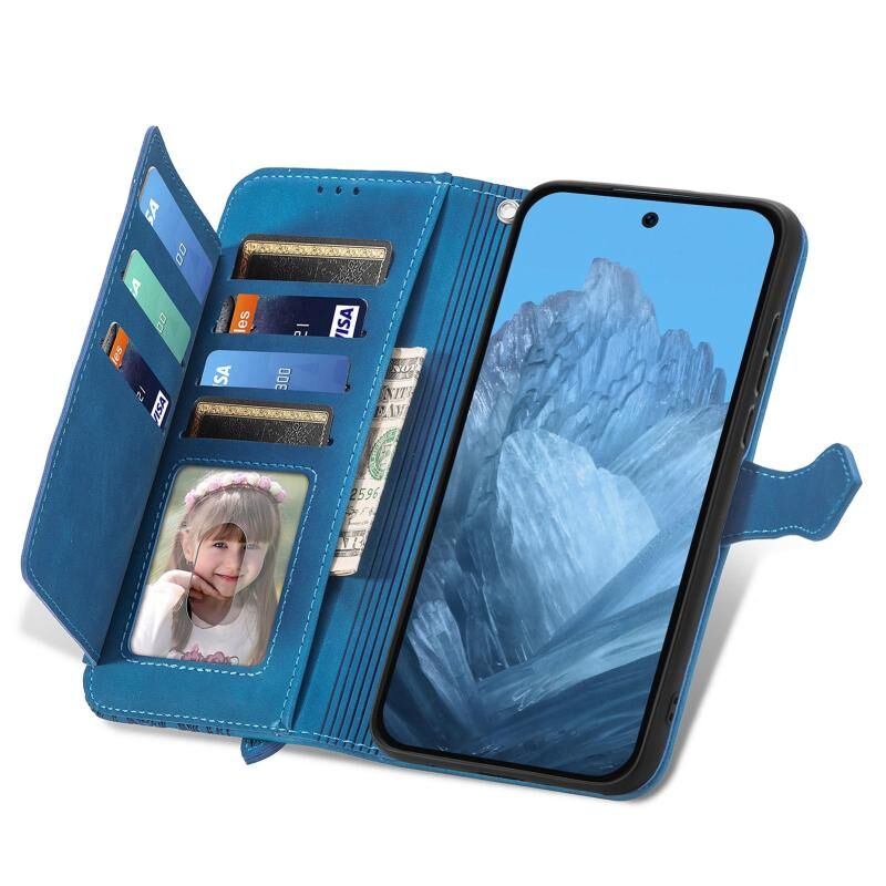 Για Google Pixel 9 ανάγλυφο λουλούδι φερμουάρ δερμάτινη θήκη τηλεφώνου (μπλε)