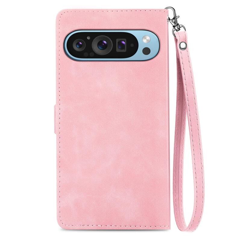 Για Google Pixel 9 ανάγλυφο λουλούδι φερμουάρ δερμάτινη θήκη τηλεφώνου (ροζ)