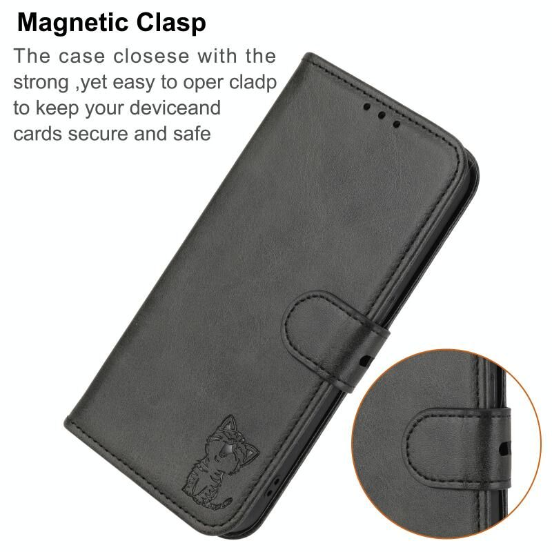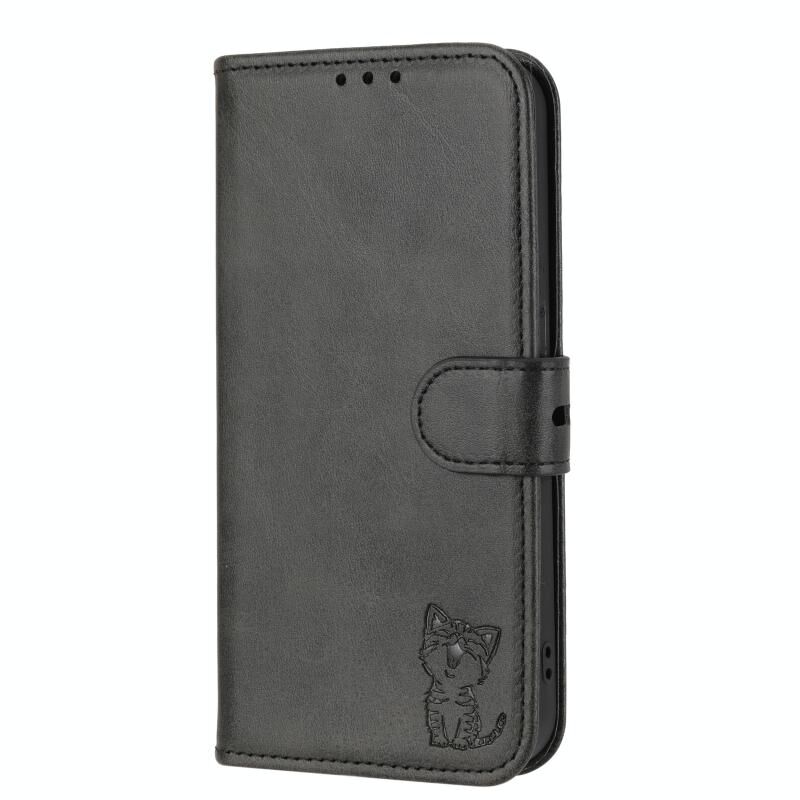 Για το Google Pixel 9 ανάγλυφο ευτυχισμένη γάτα μοτίβο Flip δέρμα τηλέφωνο υπόθεση (μαύρο)