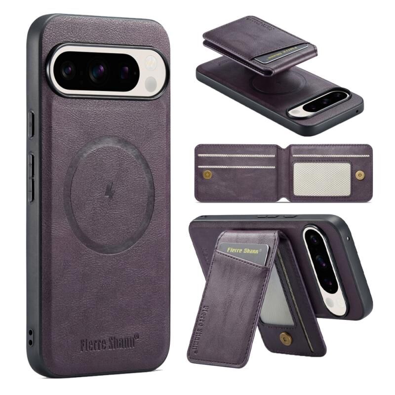 For Google Pixel 9 Fierre Shann Cowhide Vertical Flip Magnetic Card Holder Phone Case(Purple) (FIERRE SHANN)