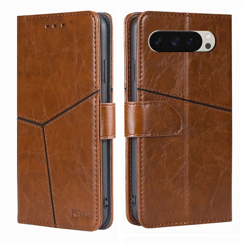 Για το Google Pixel 9 Γεωμετρική ραφή δερμάτινη θήκη τηλεφώνου (ανοιχτό καφέ)