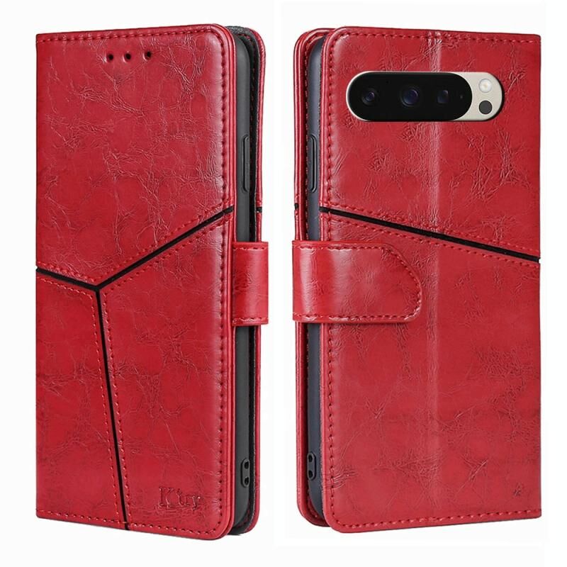 Για το Google Pixel 9 Γεωμετρική ραφή δερμάτινη θήκη τηλεφώνου (κόκκινο)