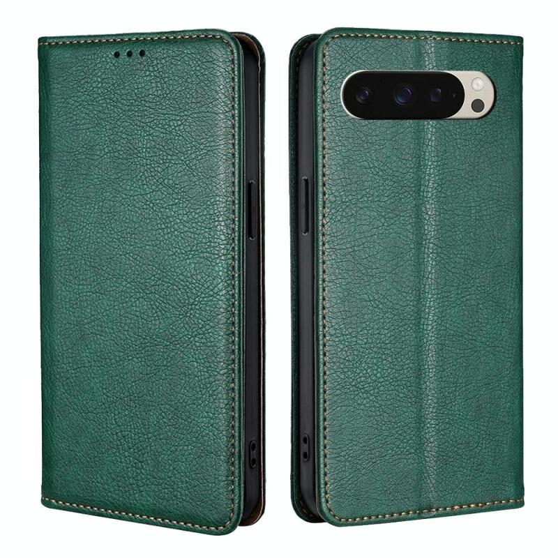 Για το Google Pixel 9 Gloss Oil Solid Color Μαγνητική δερμάτινη θήκη τηλεφώνου (πράσινο)