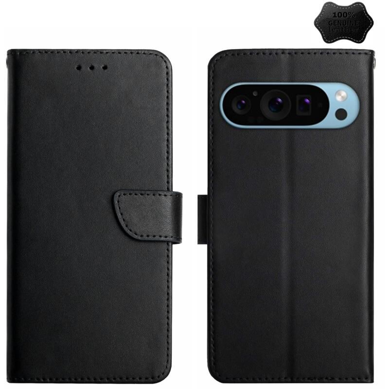 Θήκη Flip από Γνήσιο Δέρμα για Google Pixel 9 HT02, Ανθεκτική στα Δακτυλικά Αποτυπώματα (Μαύρο)