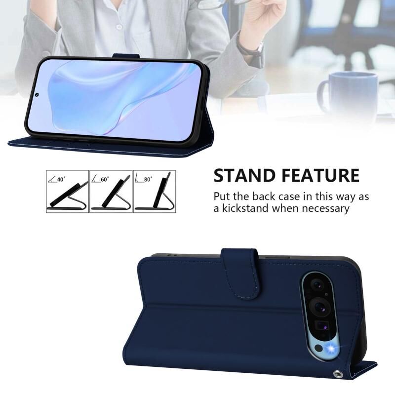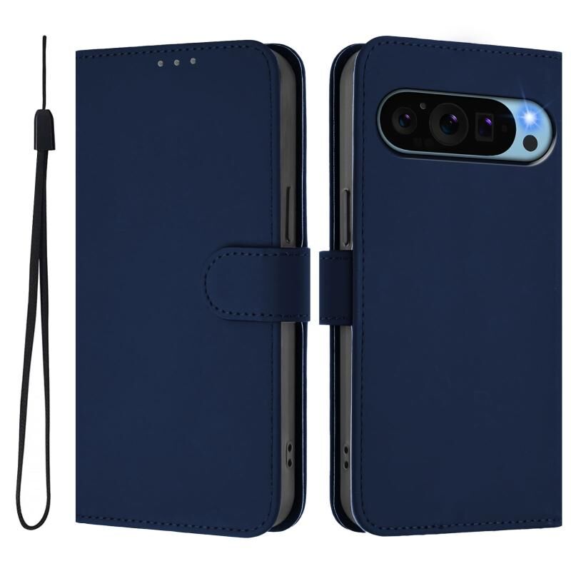 Για το Google Pixel 9 / Pixel 9 Pro Skin Feel Solid Color Δερμάτινη θήκη τηλεφώνου με κορδόνι (Ναυτικό μπλε)
