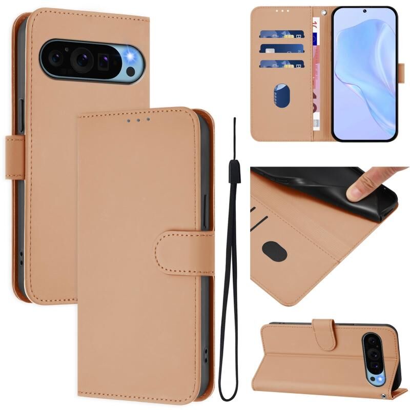 Για το Google Pixel 9 / Pixel 9 Pro Skin Feel Solid Color Δερμάτινη θήκη τηλεφώνου με κορδόνι (Nude)