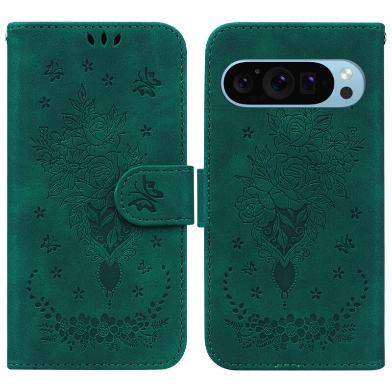 Για το Google Pixel 9 Pro Πεταλούδα Rose ανάγλυφη δερμάτινη θήκη τηλεφώνου (πράσινο)