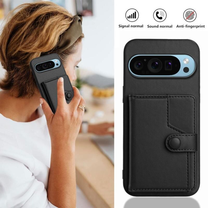 For Google Pixel 9 Pro Button Card Bag RFID Anti-theft Phone Case(Black)