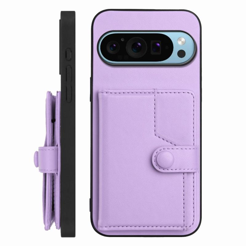 For Google Pixel 9 Pro Button Card Bag RFID Anti-theft Phone Case(Purple)