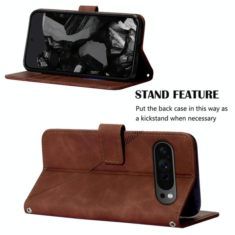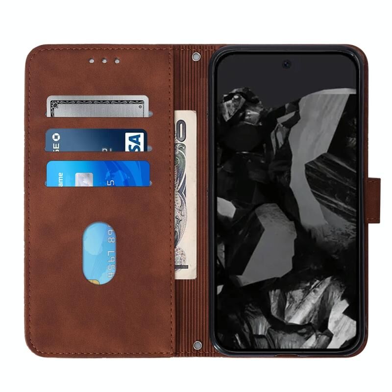 Για το Google Pixel 9 Pro Crossbody 3D ανάγλυφο Flip δέρμα υπόθεση τηλεφώνου (καφέ)