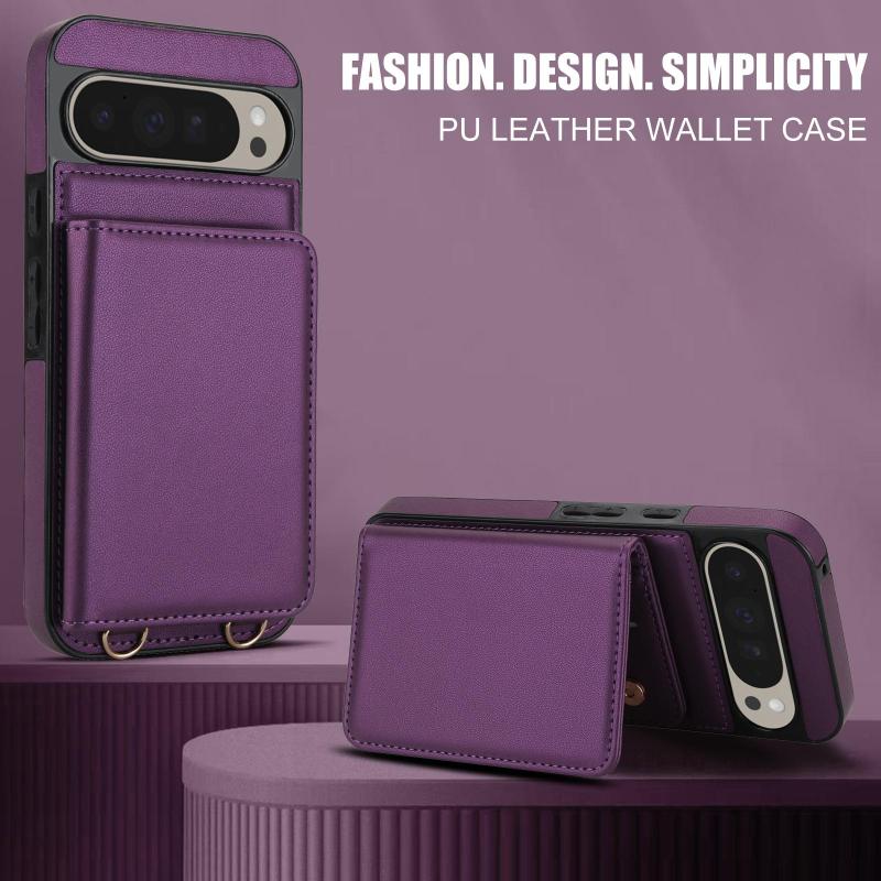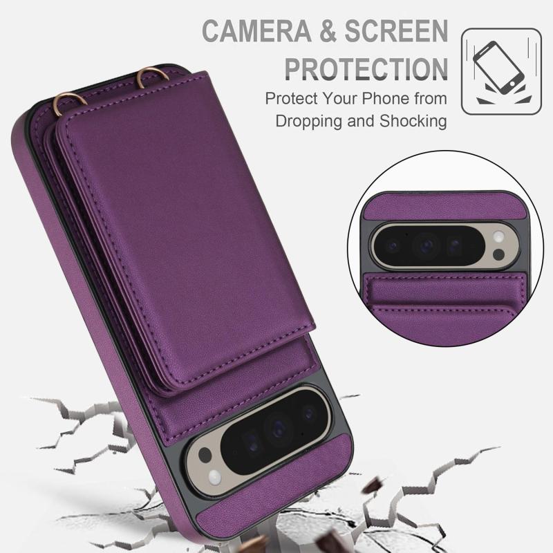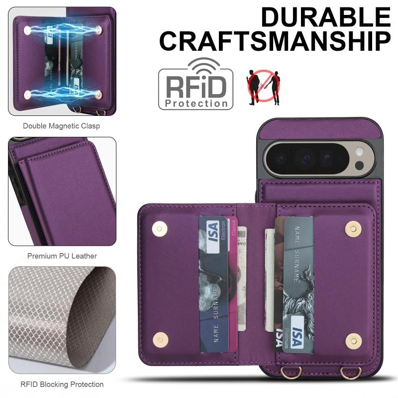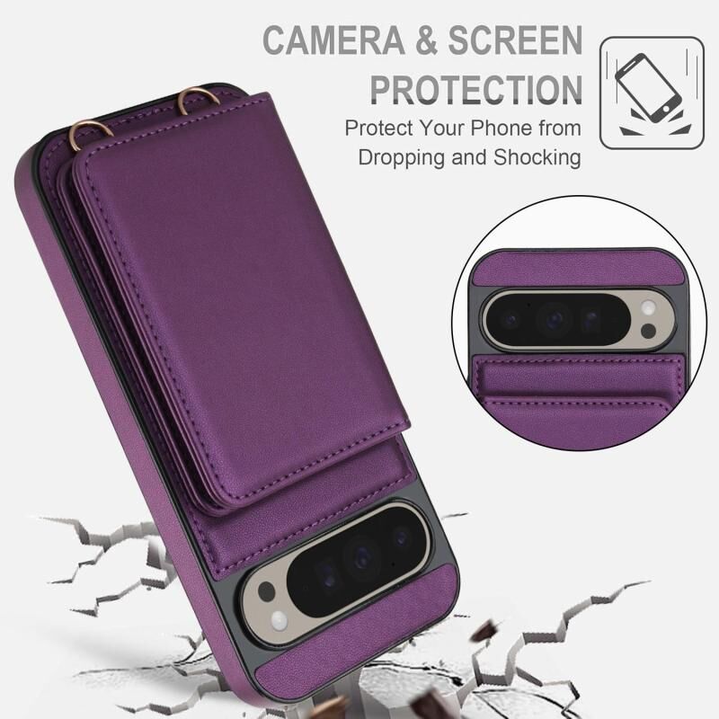 For Google Pixel 9 Pro Crossbody Dual-buckle Wallet RFID Back Leather Phone Case(Dark Purple)