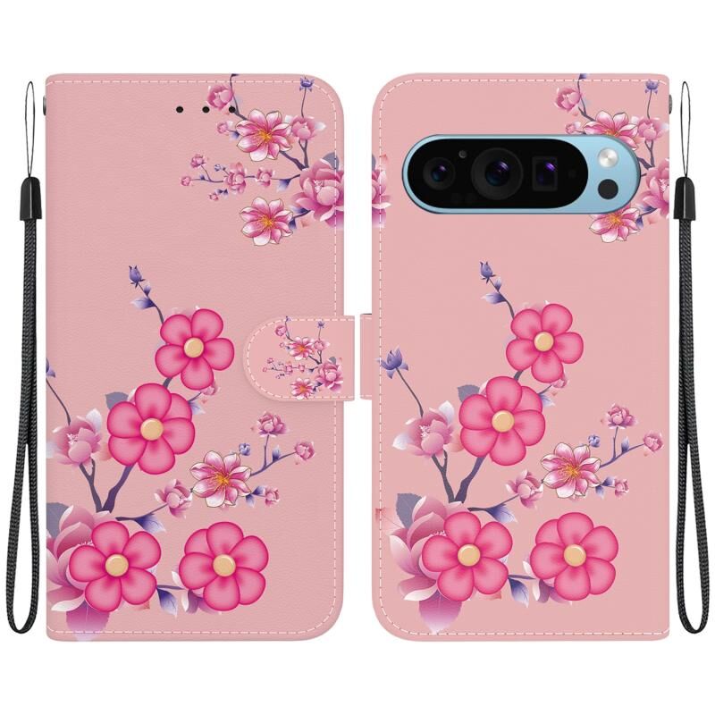 For Google Pixel 9 Pro Crystal Texture Colored Drawing Leather Phone Case(Cherry Blossoms)
