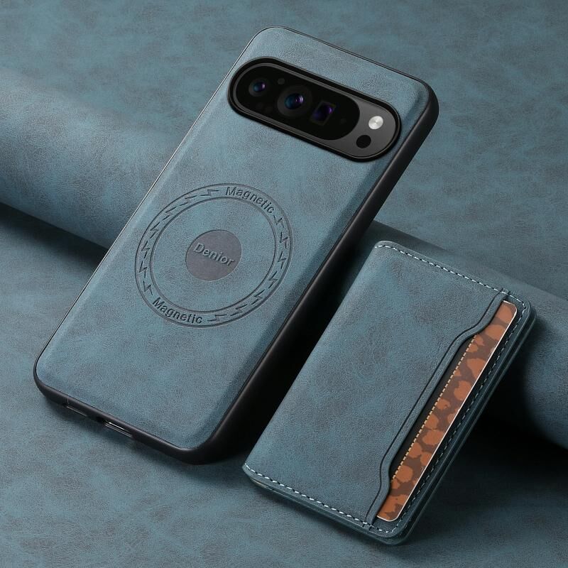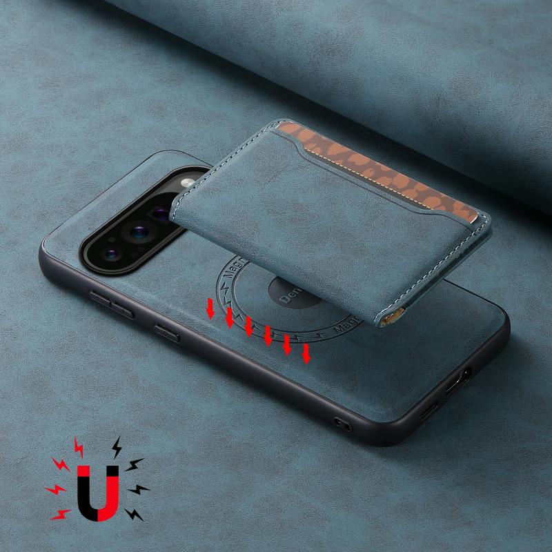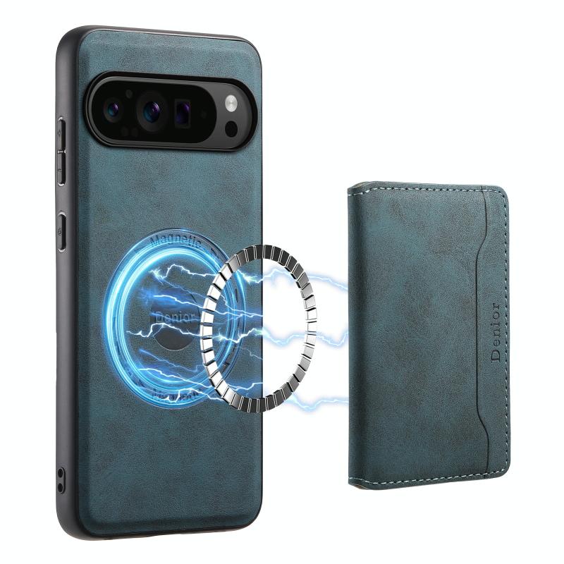 For Google Pixel 9 Pro Denior D13 Retro Texture Leather MagSafe Card Bag Phone Case(Blue) (Denior)
