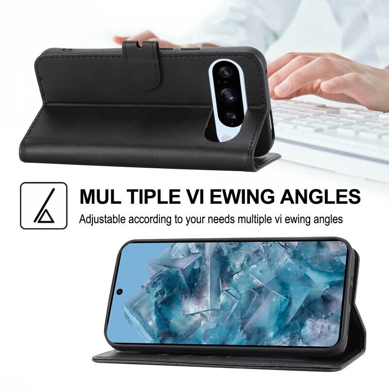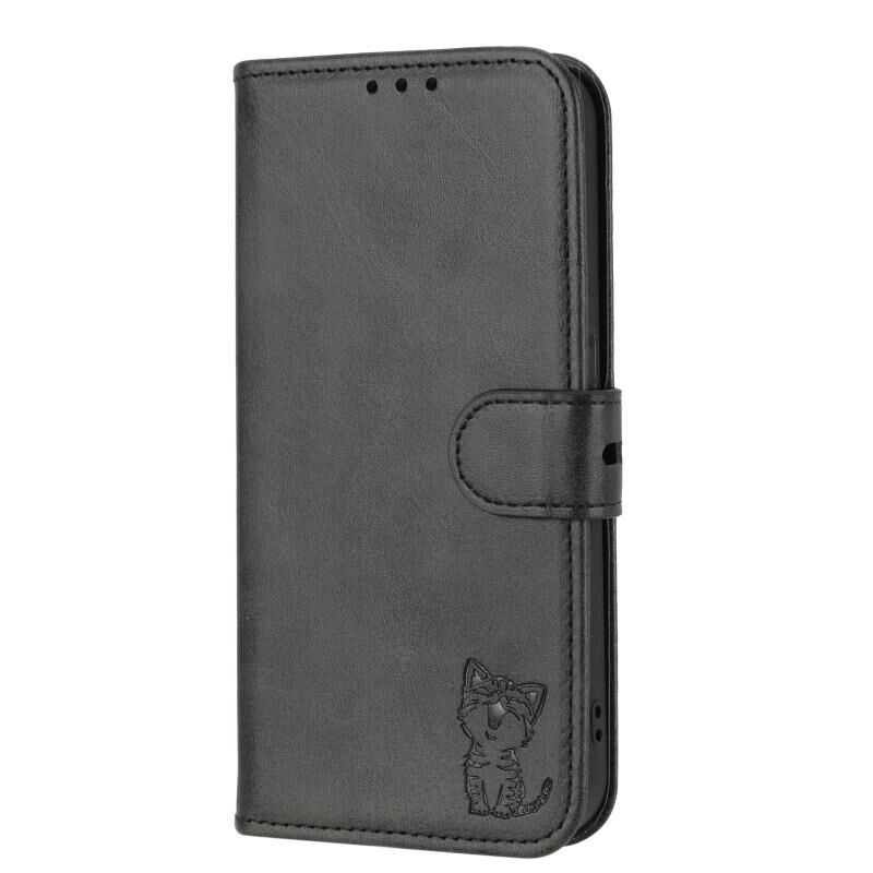 Για το Google Pixel 9 Pro ανάγλυφο Happy Cat μοτίβο Flip δέρμα τηλέφωνο υπόθεση (Μαύρο)