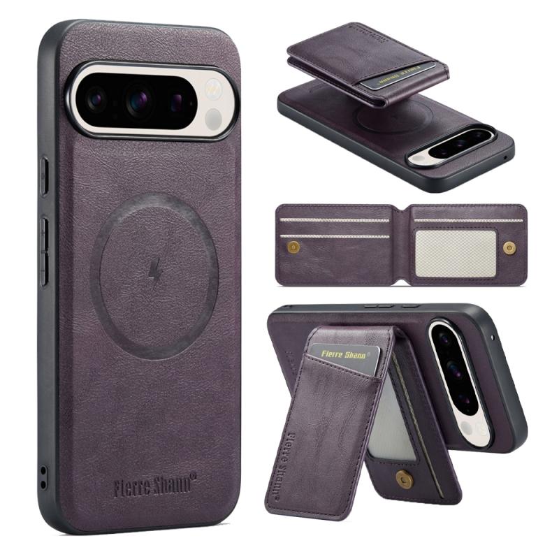 For Google Pixel 9 Pro Fierre Shann Cowhide Vertical Flip Magnetic Card Holder Phone Case(Purple) (FIERRE SHANN)