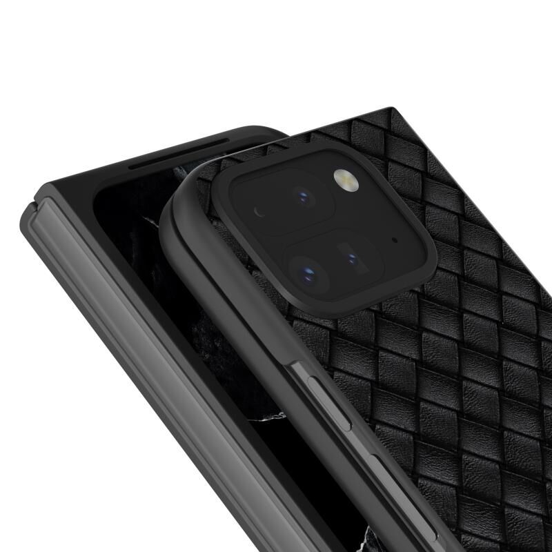 Για το Google Pixel 9 Pro Fold Μαύρο πλαίσιο υφαντή υφή PU υπόθεση τηλεφώνου (Μαύρο)