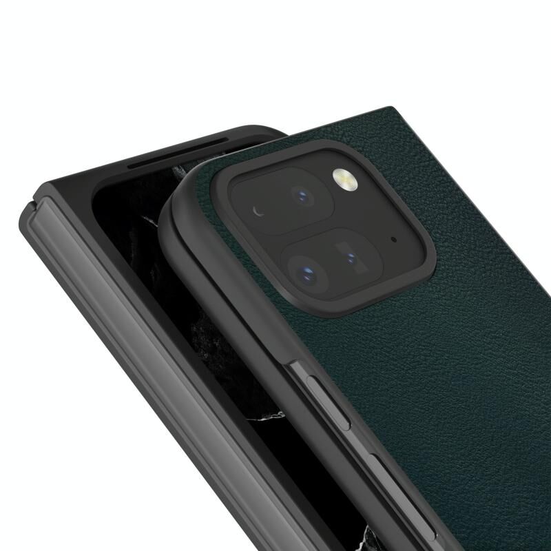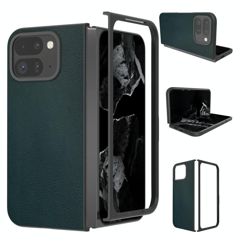 Για το Google Pixel 9 Pro Fold PU δέρμα μαύρο πλαίσιο πλήρους κάλυψης υπόθεση τηλεφώνου (πράσινο)