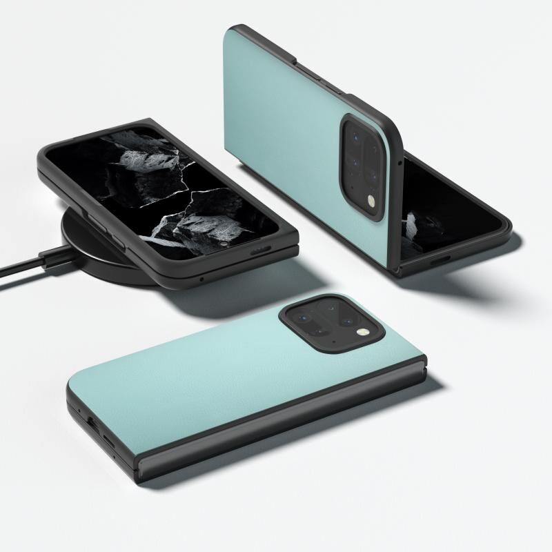 Για το Google Pixel 9 Pro Fold PU δέρμα μαύρο πλαίσιο πλήρους κάλυψης τηλέφωνο υπόθεση (γαλάζιο)