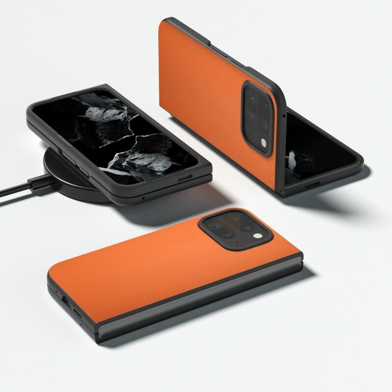 Για το Google Pixel 9 Pro Fold PU δέρμα μαύρο πλαίσιο πλήρους κάλυψης τηλέφωνο υπόθεση (πορτοκαλί)
