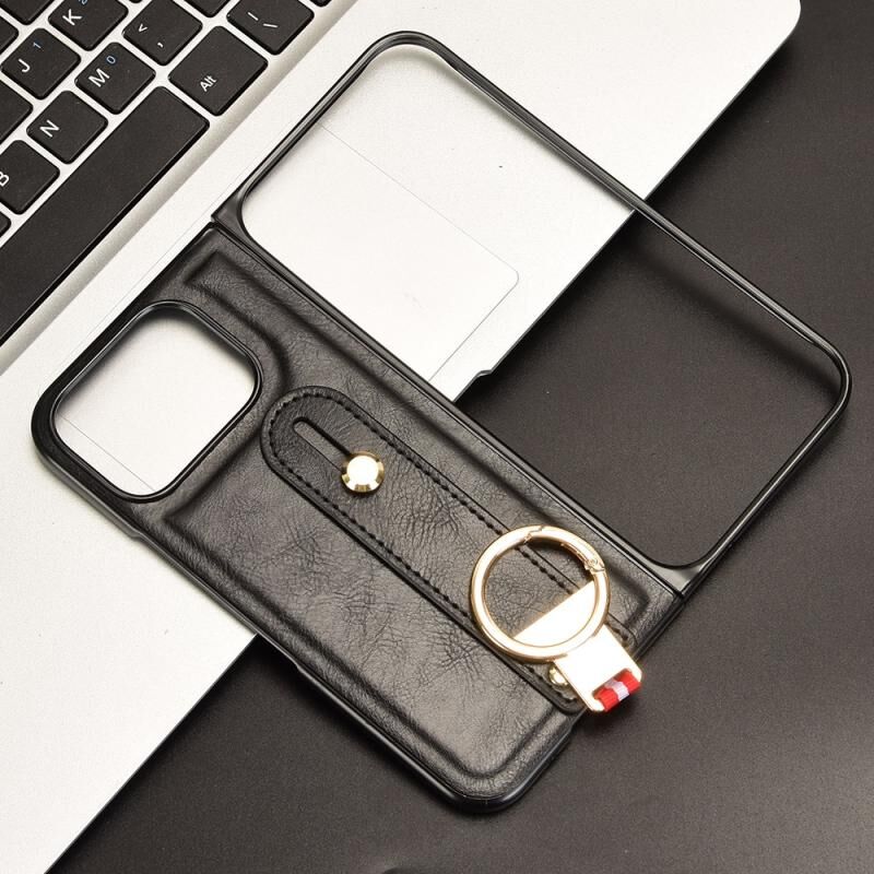Θήκη τηλεφώνου από δέρμα για Google Pixel 9 Pro Fold με λουρί καρπού (Μαύρο)