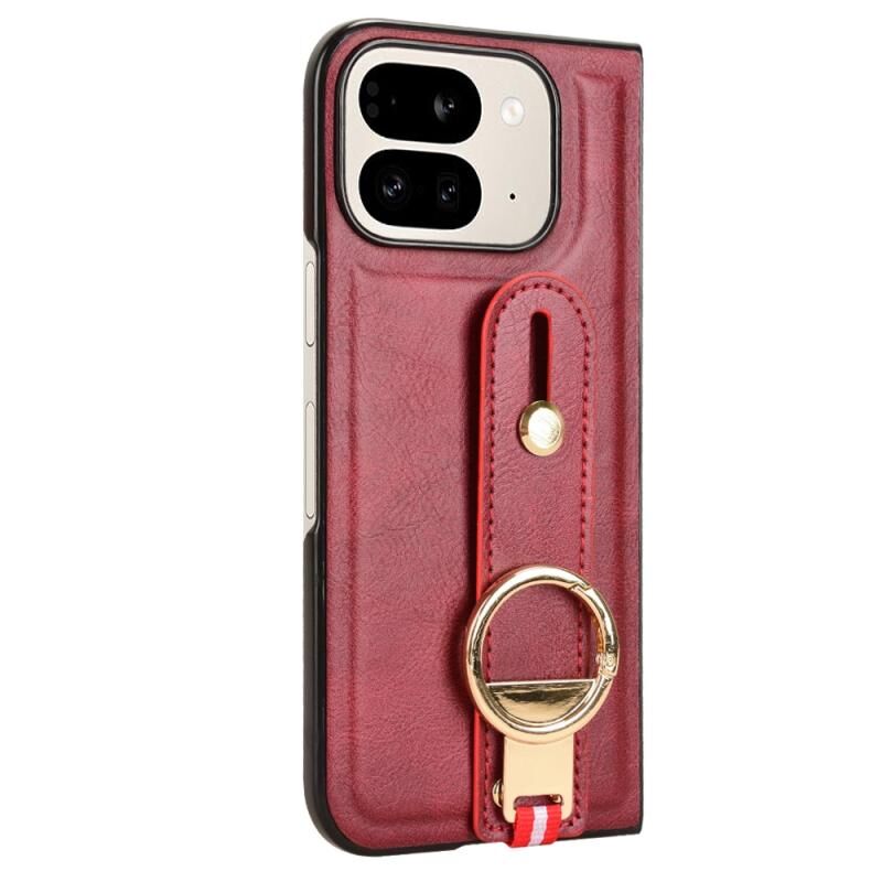 Θήκη τηλεφώνου από δέρμα για Google Pixel 9 Pro Fold με λουρί καρπού (Μαύρο)
